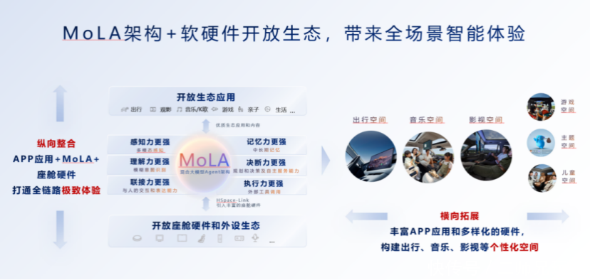 作为华为乾崑“第一境”,启境从成立之初广汽和华为乾崑就采用了合署办公。华为乾崑不再是简单的技术供应商角色,从产品定义到设计方向再到经销商网络的建立都全方位主导。启境新车将搭载华为最新的智能全家桶,除了上面提到的HUAWEI XMC 乾崑数字底盘引擎,还有华为乾崑新一代智能辅助驾驶系统,包括最新一代激光雷达和 4D 毫米波雷达,硬件层面支持 L3 级自动驾驶能力。同时该系统基于华为 WEWA 技术架构打造,在云端虚拟环境中学习应对各种复杂情况。最新版的鸿蒙座舱也不会缺席,预计将使用全新的MoLA混合大模型Agent架构。具备长期记忆和模糊意图理解等更智能的核心能力,从工具化转型为 “沉浸、自然、有温度的移动生活空间”。